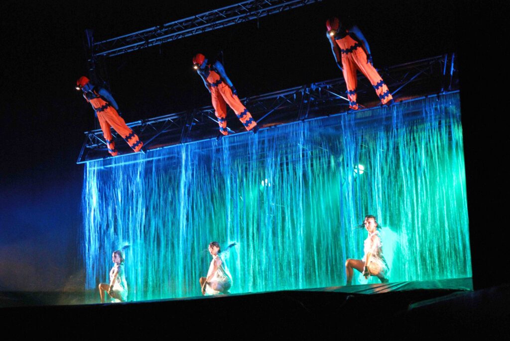Waterwall é uno show dinamico e in continua evoluzione dalle infinite forme che unisce la potenza dell’acqua alla dinamicità dei performers, in un connubio definito dalla critica “physical theater”.